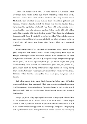 yang menurut faham Mu‟tazilah memang ada. Lebih lanjut lagi, kekuasaan mutlak itu