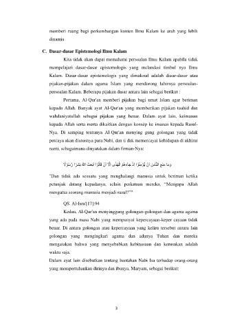 Kalam. Dasar-dasar epistemologis yang dimaksud adalah dasar-dasar atau