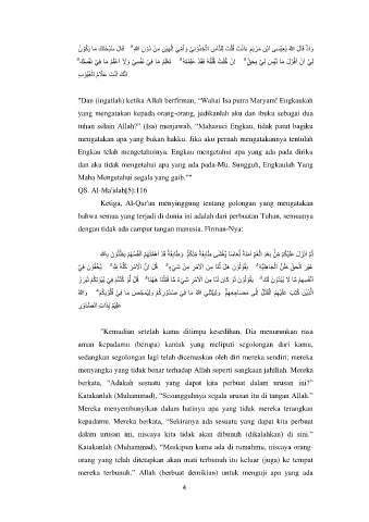 Ketiga, Al-Qur'an menyinggung tentang golongan yang mengatakan