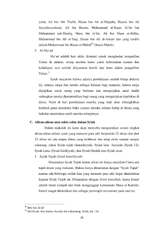 sekarang, yakni Syiah tujuh (Ismailiyyah), Syiah Isna „Asyarah (Syiah 12),