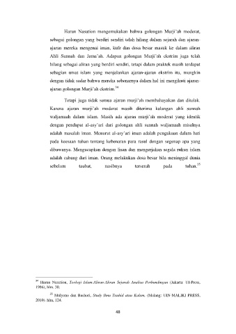 Harun Nasution mengemukakan bahwa golongan Murji‟ah moderat,