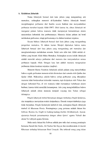 Menurut Harun Nasution Jabariyah adalah paham yang menyebutkan