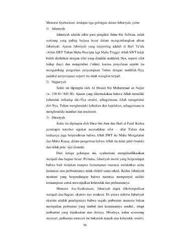 menjadi dua bagian, ekstrim dan moderat. Di antara doktrin Jabariyah