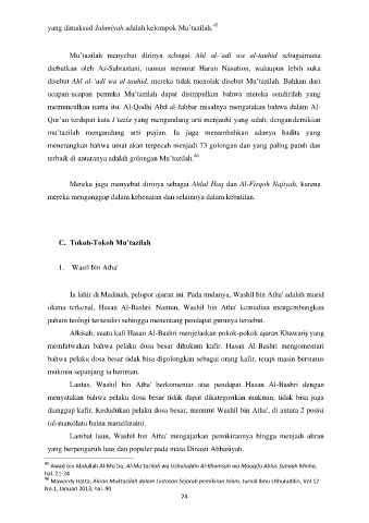 ulama terkenal, Hasan Al-Bashri. Namun, Washil bin Atha' kemudian mengembangkan