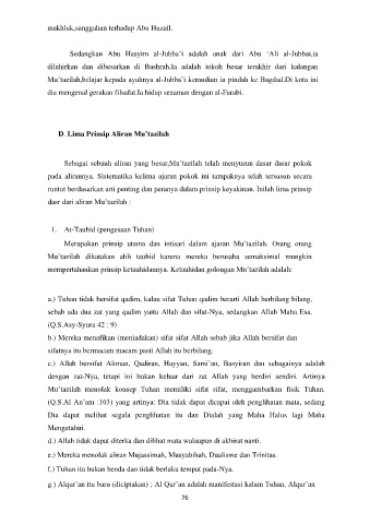 mempertahankan prinsip ketauhidannya. Ketauhidan golongan Mu‟tazilah adalah: