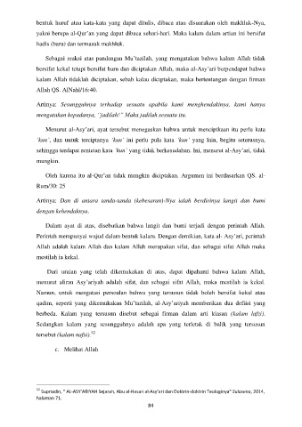 menurut aliran Asy‟ariyah adalah sifat, dan sebagai sifat Allah, maka mestilah ia kekal.