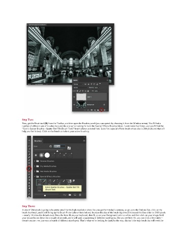 “Kyle’s Spatter Brushes - Spatter Bot Tilt (Brush Tool)” brush (shown selected here. Look for a special effects brush whose size is 284 pixels and that will