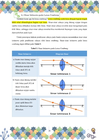 istimewa pada pembiasan cahaya oleh lensa cembung. Sinar-sinar istimewa pada lensa