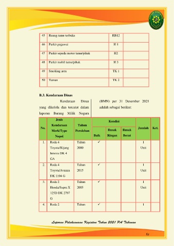 Kendaraan Dinas (BMN) per 31 Desember 2021