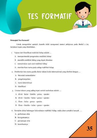 1. Tujuan dari klasifikasi makhluk hidup adalah ….