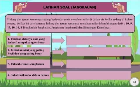 renang. berikut ini data lamanya hidung dan teman temannya menahan nafas dalam hitungan detik : 10, 9,