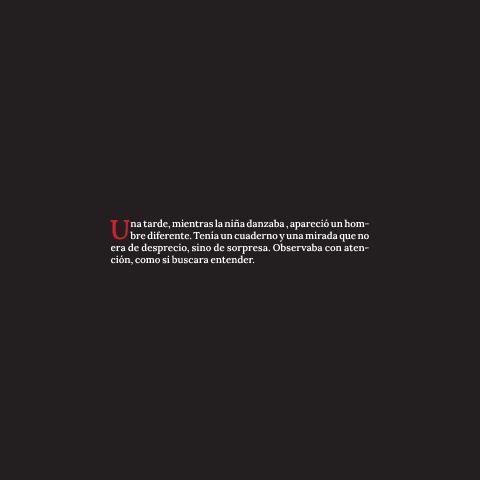 na tarde, mientras la niña danzaba , apareció un hom- Ubre diferente. Tenía un cuaderno y una mirada que no era de desprecio, sino de sorpresa. Observaba con aten- ción, como si buscara entender.