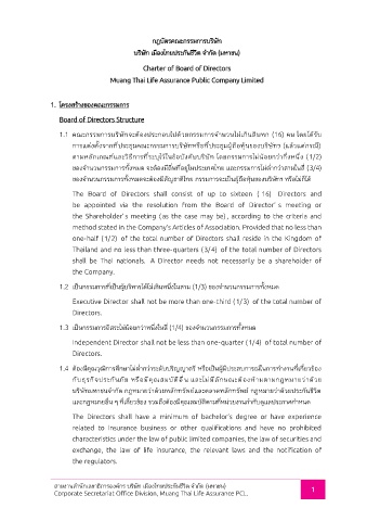 1.1 คณะกรรมการบริษัทจะต้องประกอบไปด้วยกรรมการจ านวนไม่เกินสิบหก (16) คน โดยได้รับ