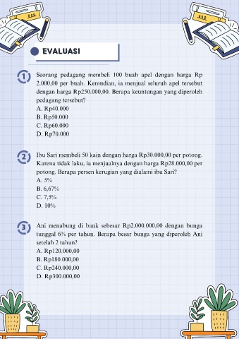 2 Ibu Sari membeli 50 kain dengan harga Rp30.000,00 per potong.