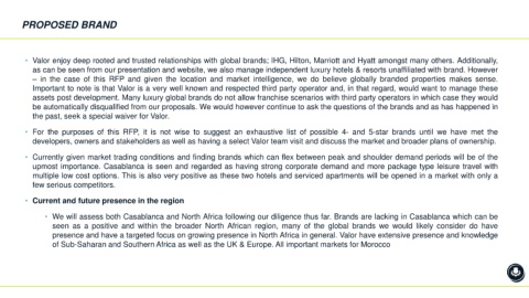 • For the purposes of this RFP, it is not wise to suggest an exhaustive list of possible 4- and 5-star brands until we have met the