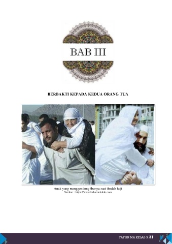 BERBAKTI KEPADA KEDUA ORANG TUA Anak yang menggendong ibunya saat ibadah haji Sumber : https://www.kabarmakkah.com TAFSIR MA KELAS X 31