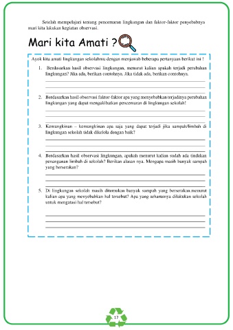 Ayok kita amati lingkungan sekolahmu dengan menjawab beberapa pertanyaan berikut ini !