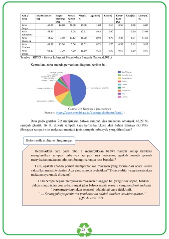 Data pada gambar 2.2 menjukkan bahwa sampah sisa makanan sebanyak 46,22 %,