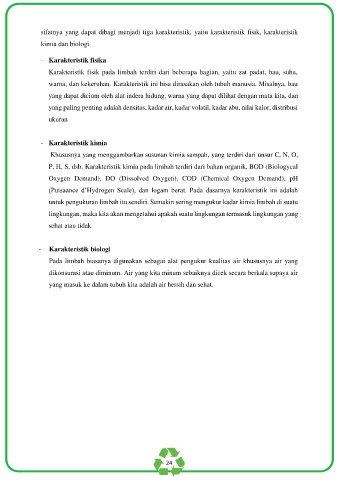 P, H, S, dsb. Karakteristik kimia pada limbah terdiri dari bahan organik, BOD (Biologycal