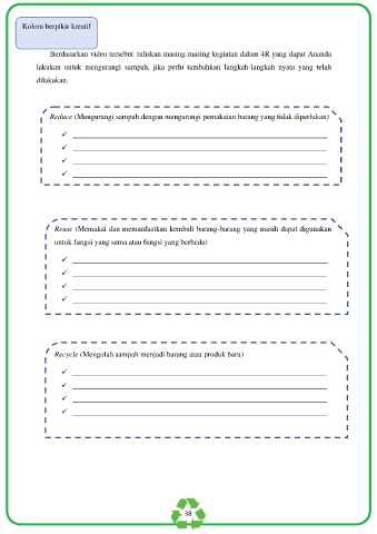 Berdasarkan video tersebut tuliskan masing-masing kegiatan dalam 4R yang dapat Ananda