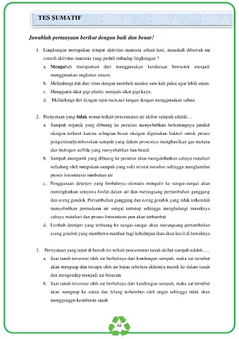 2. Pernyataan yang tidak sesuai terkait pencemaran air akibat sampah adalah....