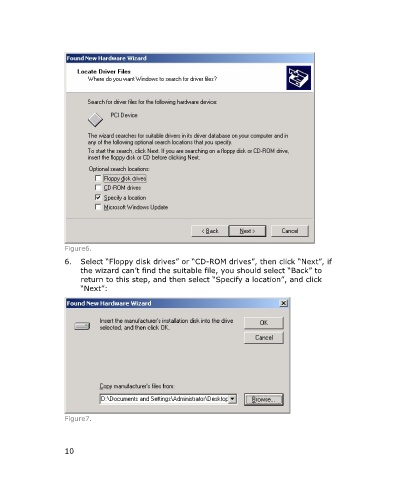 Figure6. 6. Select “Floppy disk drives” or “CD-ROM drives”, then click “Next”, if the wizard can’t find the suitable file, you should select “Back” to return to this step, and then select “Specify a location”, and click “Next”: Figure7. 10