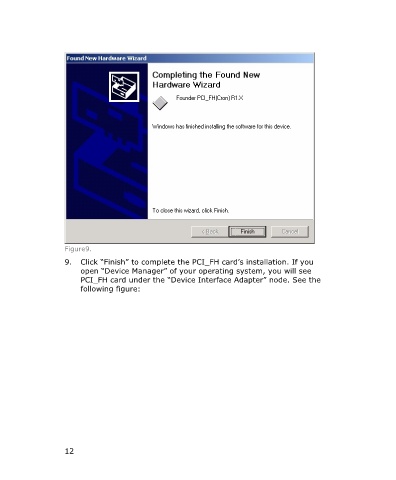 Figure9. 9. Click “Finish” to complete the PCI_FH card’s installation. If you open “Device Manager” of your operating system, you will see PCI_FH card under the “Device Interface Adapter” node. See the following figure: 12
