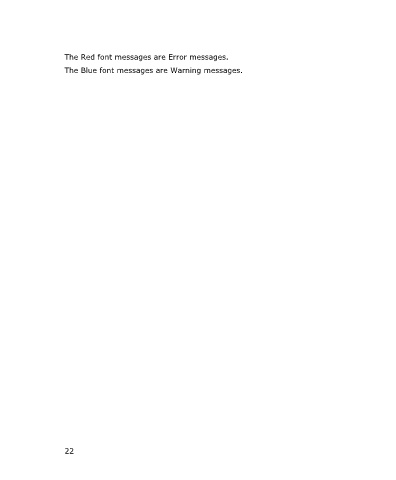 The Red font messages are Error messages. The Blue font messages are Warning messages. 22