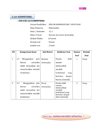 Bahan Ajar |BARISAN DAN DERET ARITMATIKA 7