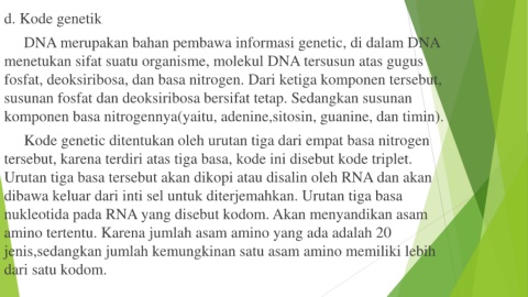 DNA merupakan bahan pembawa informasi genetic, di dalam DNA