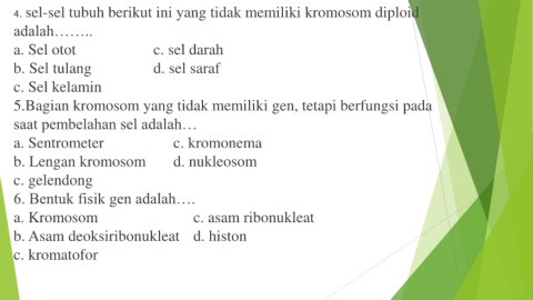 4. sel-sel tubuh berikut ini yang tidak memiliki kromosom diploid