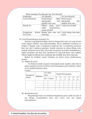 Tabel: perbedaan Tes Obyektif dan Non Obyektif