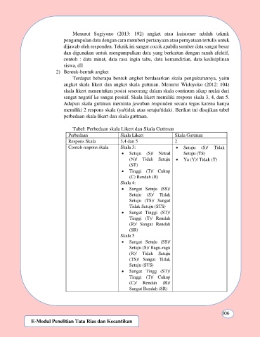 Terdapat beberapa bentuk angket berdasarkan skala pengukurannya, yaitu