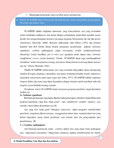 Pemakaian teknik SCAMPER dalam menyusun proposal penelitian dapat dijelaskan