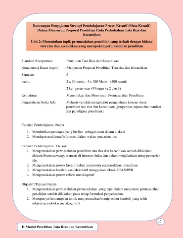 1. Mengemukakan permasalahan penelitian tata rias dan kecantikan setelah dilakukan