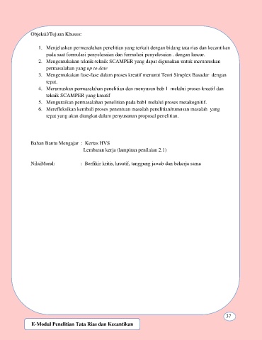 1. Menjelaskan permasalahan penelitian yang terkait dengan bidang tata rias dan kecantikan