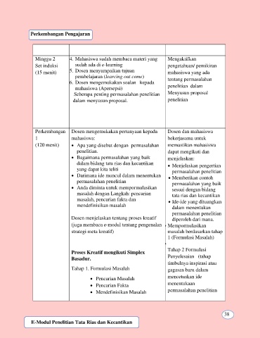 (15 menit) 5. Dosen menyampaikan tujuan mahasiswa yang ada