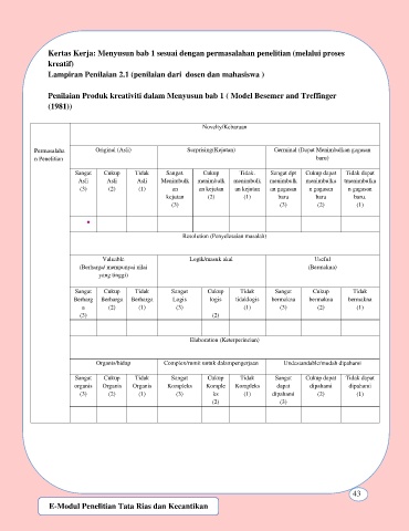Penilaian Produk kreativiti dalam Menyusun bab 1 ( Model Besemer and Treffinger