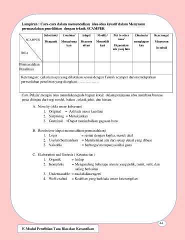 Keterangan: (jelaskan apa yang dilakukan sesuai dengan Teknik scamper dari memdapatkan