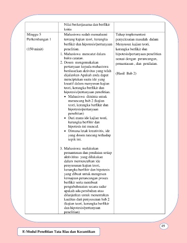 1. Mahasiswa mencatat dalam hipotesis/pertanyaan penelitian