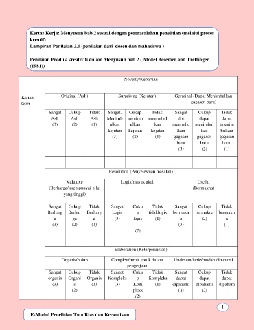 Penilaian Produk kreativiti dalam Menyusun bab 2 ( Model Besemer and Treffinger