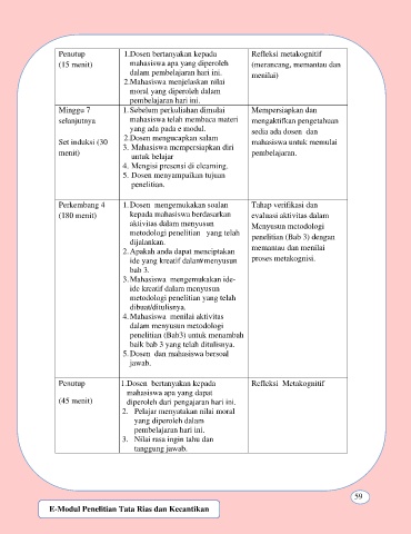 Penutup 1.Dosen bertanyakan kepada Refleksi metakognitif