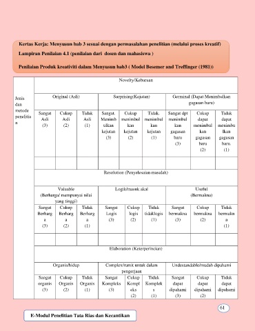 Penilaian Produk kreativiti dalam Menyusun bab3 ( Model Besemer and Treffinger (1981))