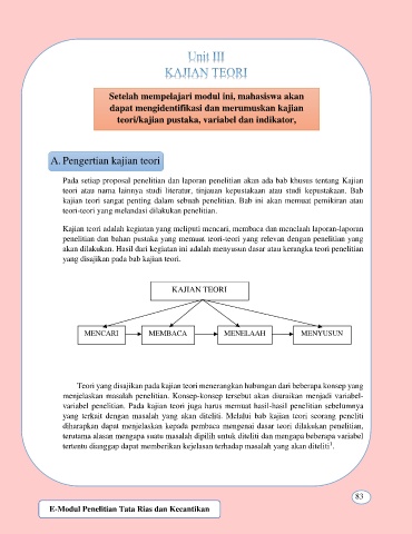 yang terkait dengan masalah yang akan diteliti. Melalui bab kajian teori seorang peneliti