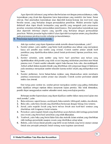Beberapa sumber kepustakaan yang dapat dijadikan sumber dalam menyusun kajian atau