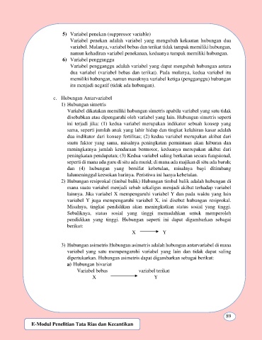 Variabel dikatakan memiliki hubungan simetris apabila variabel yang satu tidak