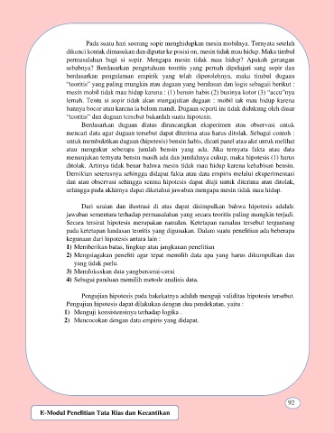 menunjukan ternyata bensin masih ada dan jumlahnya cukup, maka hipotesis (1) harus