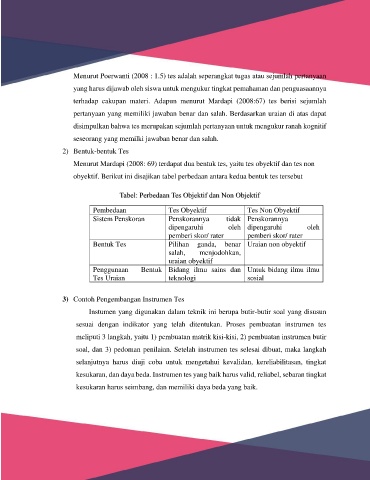 Menurut Mardapi (2008: 69) terdapat dua bentuk tes, yaitu tes obyektif dan tes non