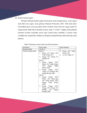 (ya/tidak atau setuju/tidak). Berikut ini disajikan tabel perbedaan skala likert dan skala