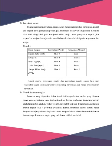 Dalam membuat pernyataan dalam angket harus menampilkan pernyataan positif
